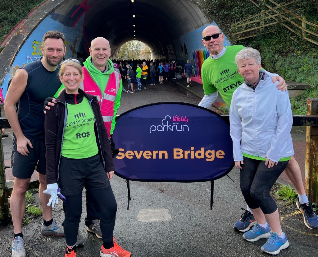 It was 13 miles of walking today – unless you’re trying to complete the whole UK coastline I would suggest it’s one to miss. But having discovered a bit in daylight today we find we’re near the lovely village of Aust and, now we’re all dry and recovered, we’re about to visit the pub for refreshment. Tomorrow’s another day – it’s Severn Bridge parkrun and we’re meeting Ros and David.