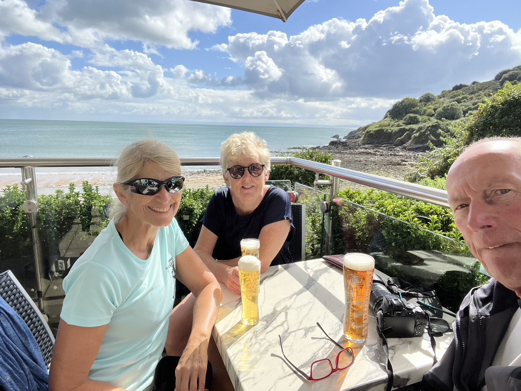The drop down into Langland Bay was just stunning – we really have hit on a magical place to stay. Opposite our apartment is ‘Langlands Brasserie’ where we toasted our rambling achievement with beers. And it all ended in sunshine.