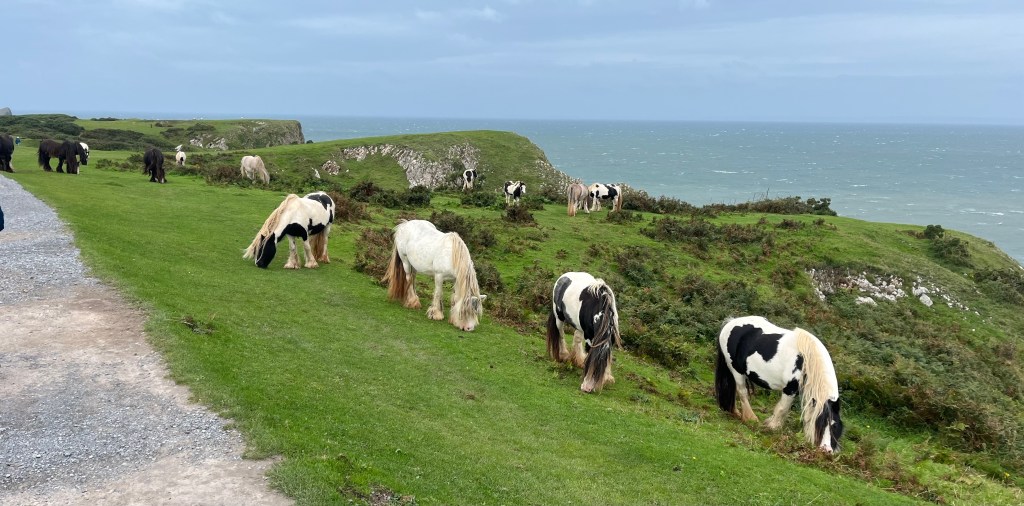 By the time we emerged the rain had stopped and then held off all day. So a fabulous walk along the miles of Swansea promenade and then into the Mumbles … and it had to be a Greggs sausage roll for lunch. We stuck to the seafront coastal path and were impressed by the Coastal Protection Project – it’s going to look so smart although I’m sure it’s causing quite an upheaval.