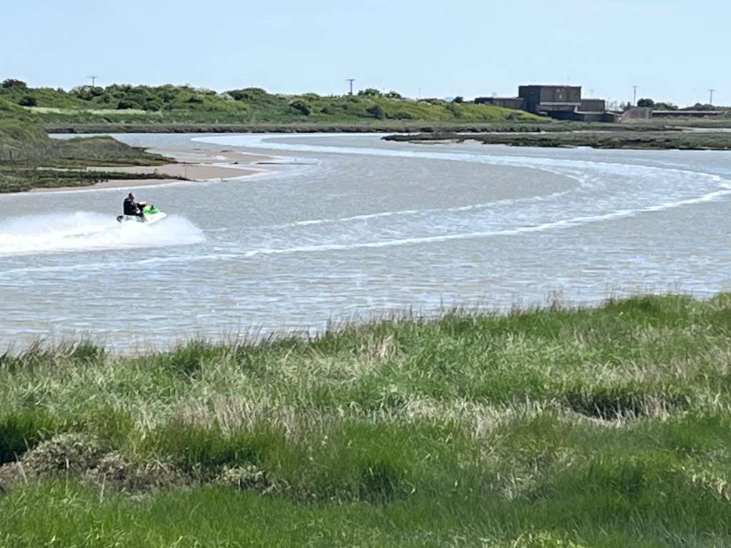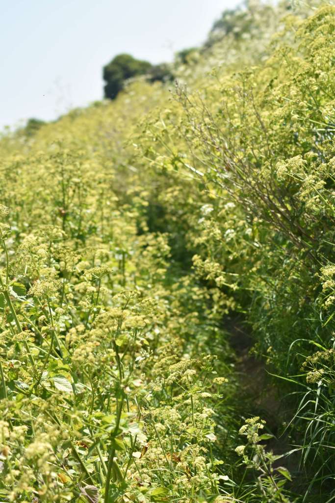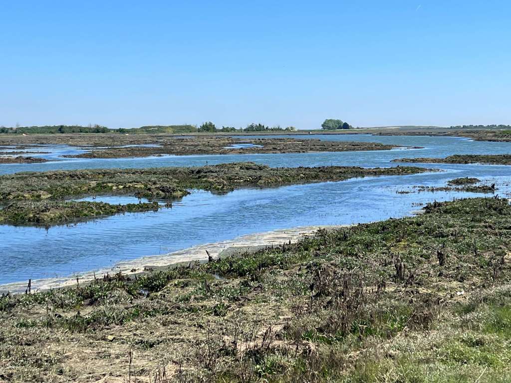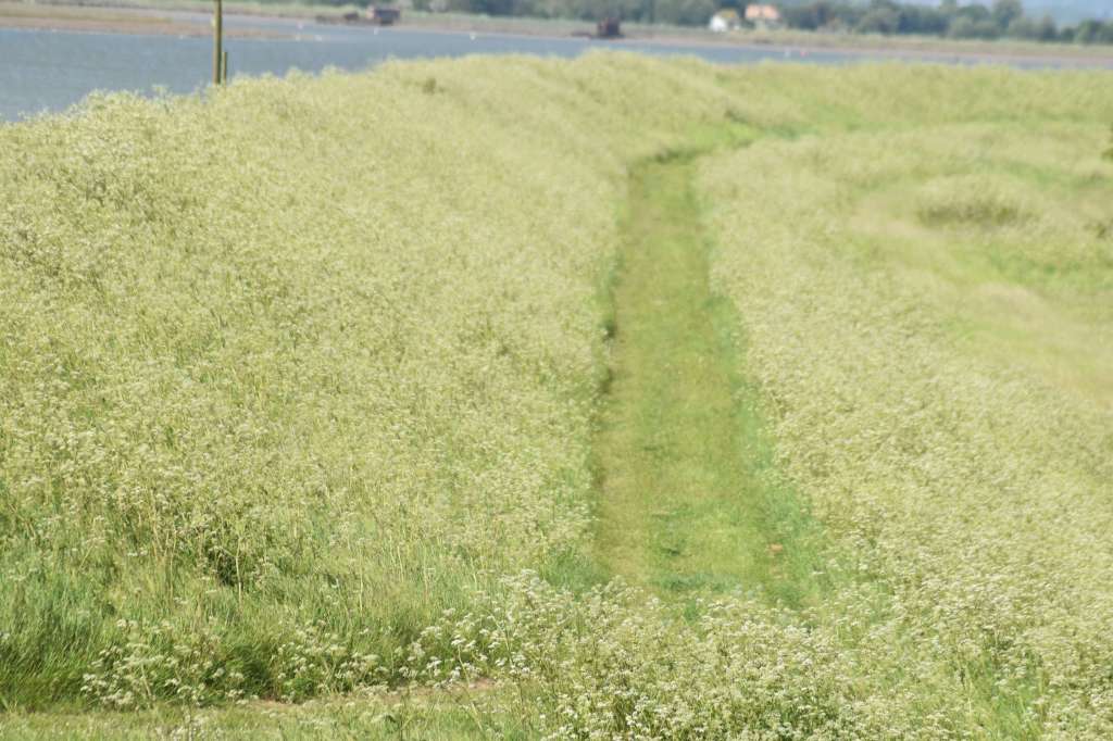 I’m still not 100% well so agreed to be part rambler/part chauffeur today – handy also in that the island is somewhat remote in terms of public transport. This being a large nature reserve, we parked up in the RSPB car park and, in the absence of any other walkers or twitchers, we got talking to the friendly RSPB man. He was so helpful in showing us the route on a map, informed us that the path was easygoing (I put my walking pole back) and pointed to his collection of wildlife photos. Amongst the pictures of birds, hares and butterflies my eyes were drawn to a photo of a snake! “Oh yes, we have adders here” he casually said, “You’ll find them basking on the sea walls.” And so a lot of heavy stomping went on today, to warn those pesky slithery things that ‘the Rambling Roses are coming, you better skedaddle!’