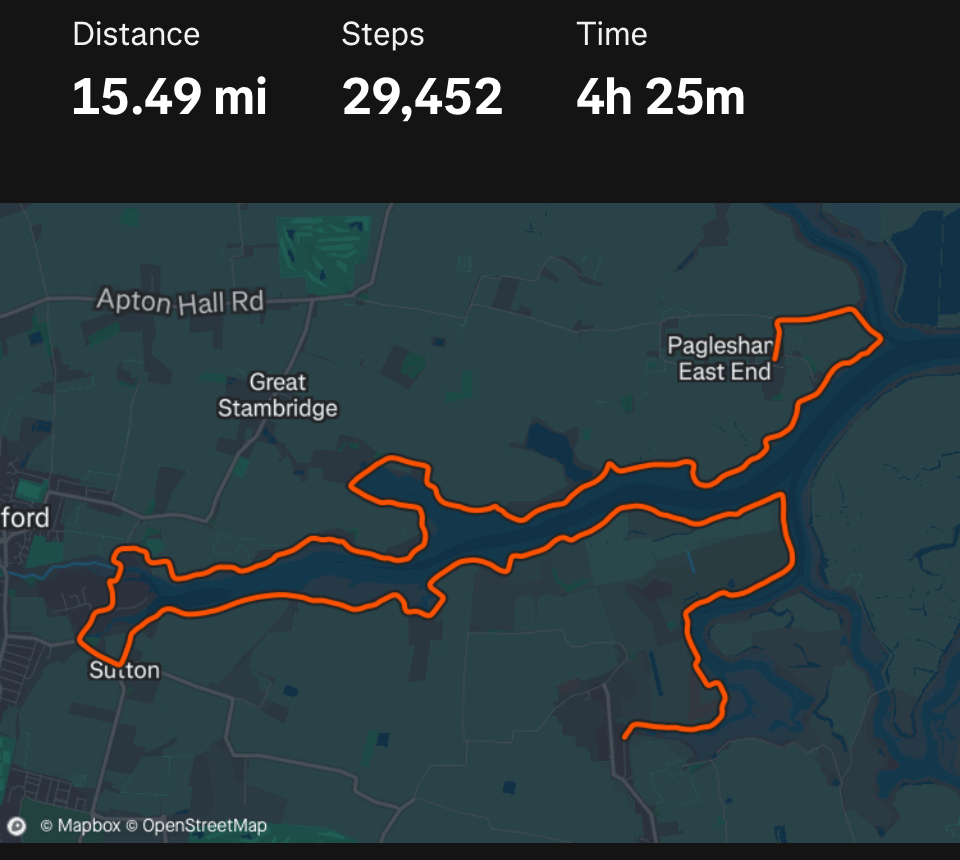 That completes our walking for this little breakaway to Essex. Steve has walked 80 miles in that time – I’ve only managed half of that!