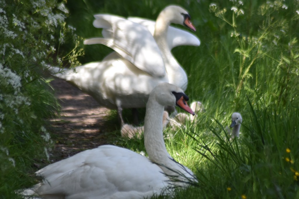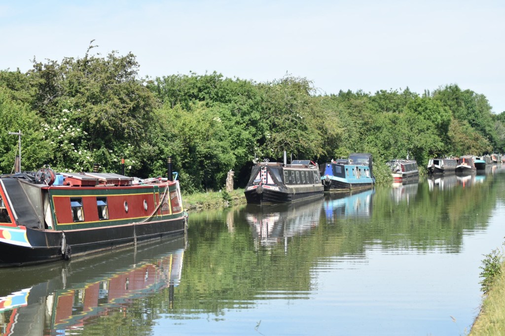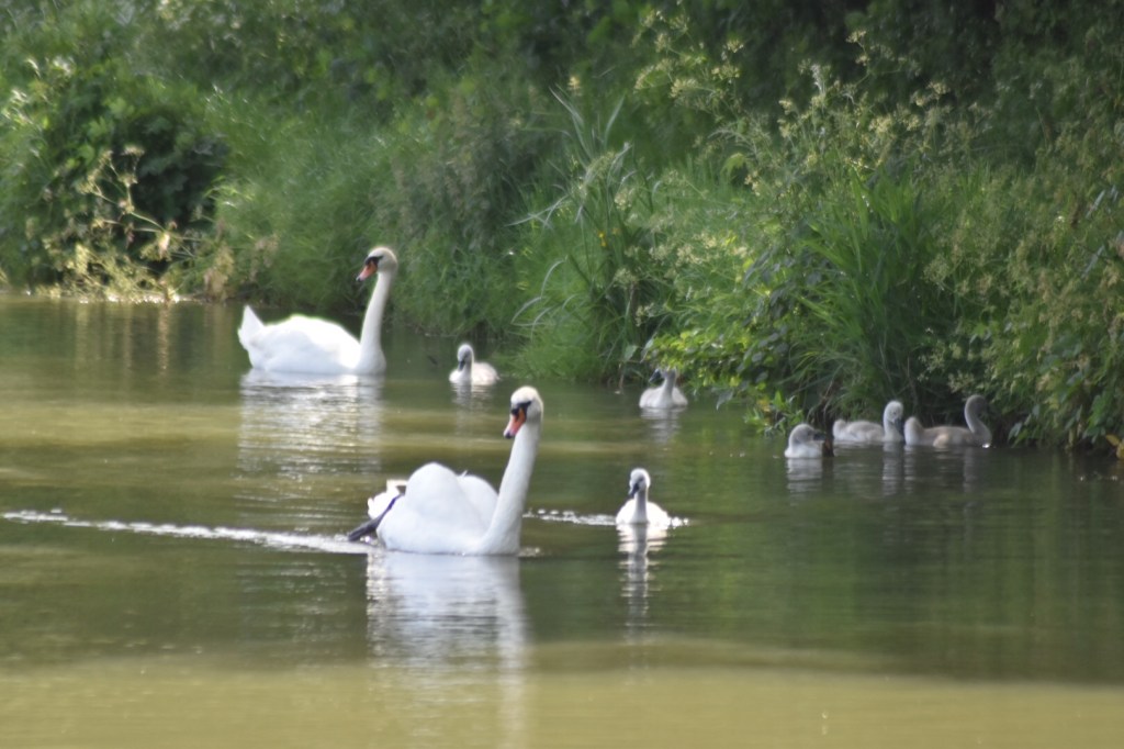 A beautiful riverside walk and then we were onto the canal path leading to Cosgrove. Had a little blockage along the towpath – a family of swans just resting before a swim – had to be very patient and let them move in their own good time. Some great bird life and insect life along the way – butterflies, dragonflies – all perfect photo opportunities. Wild flowers out in full force too including the spectacular poppies.