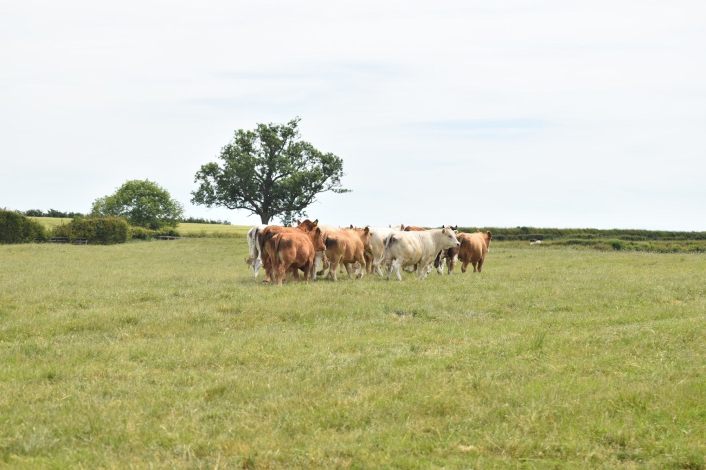 At one point we entered a field where the farmer was chopping up some trees – as we walked through the gate there was a stampede of cattle tearing towards us, with a tractor moving speedily behind. Gulp!! Tom, having been chased by cows the previous weekend was a wee bit nervous … and I’m always on edge where our bovine friends are concerned! The farmer shooed them away and told us just to walk and they’d be fine. So, we did as we were told (with a little backward look now and again) … and indeed we were fine.